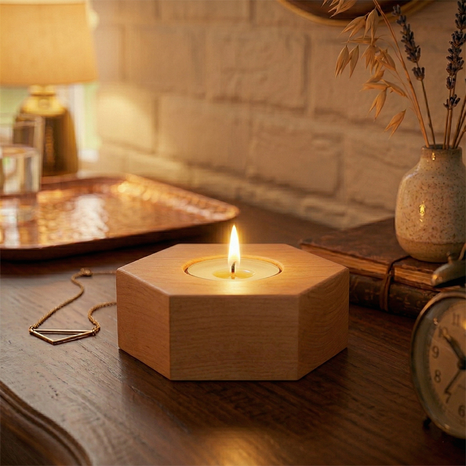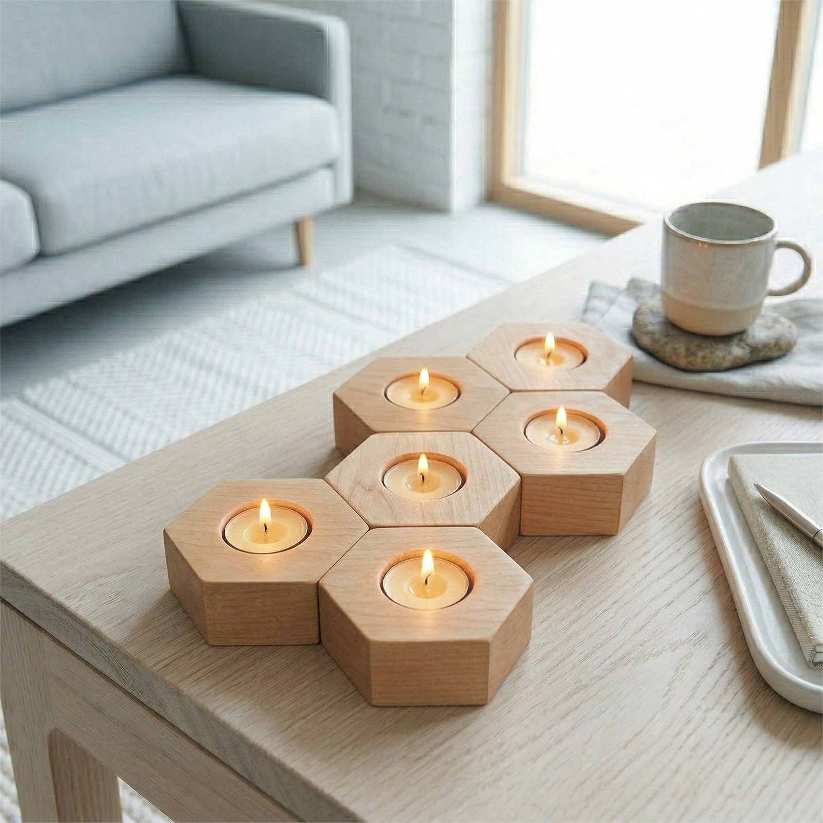 Sechseckiger Kerzenhalter aus Erle – Gemütliche Tischdekoration