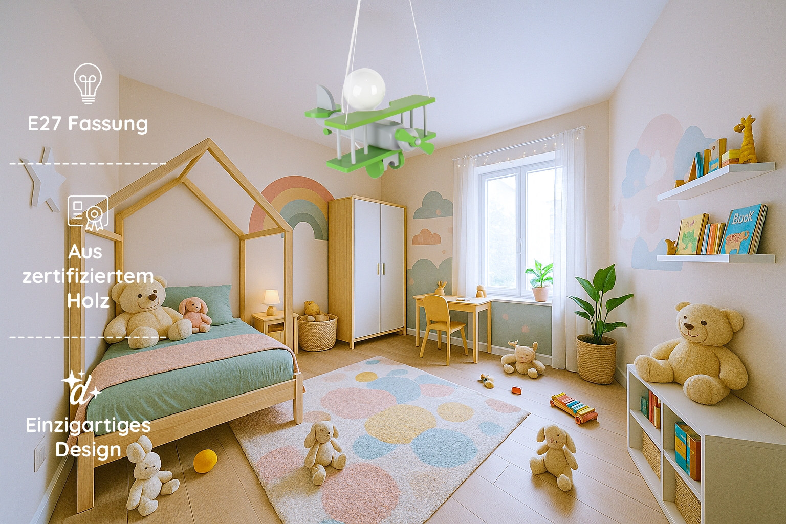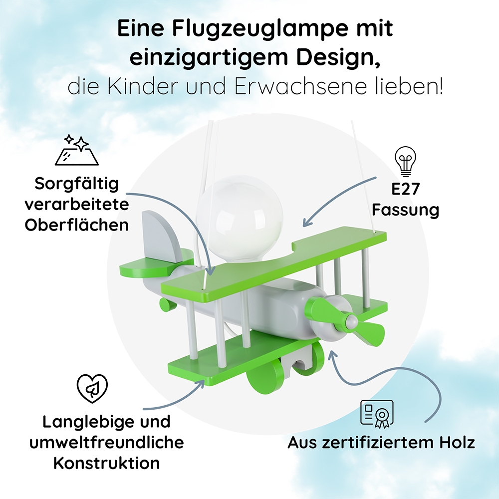 ✔️Die Flugzeug-Pendelleuchte für Kinder ist aus massivem Kiefernholz gefertigt und daher besonders robust, stabil und langlebig.